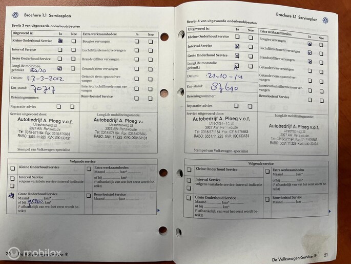 Onderhoudshistorie aanwezig: Ja