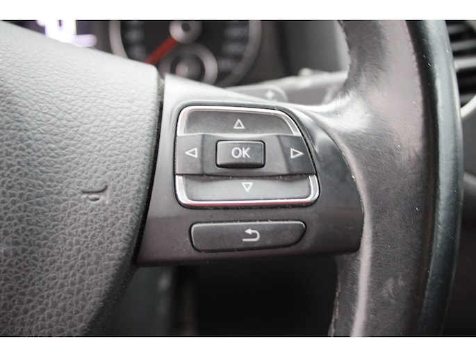 Als u regelmatig met een aanhanger of een fietsendrager op pad bent, is de afneembare trekhaak een praktische extra. De kortste weg, de zuinigste weg, de snelste weg... elke weg is te vinden met het navigatiesysteem. De auto is ook uitgevoerd met automatische airconditioning. Switchen van radiozender of het geluid dempen - het gaat gemakkelijk en veilig dankzij de audiobediening op het stuur. De parkeersensoren registreren alles. Ook dat ene paaltje dat net buiten uw gezichtsveld valt. U bent in deze Volkswagen ook voorzien van sportstuur met schakelpaddels, cruise control, isofix-aansluiting, centrale deurvergrendeling met afstandsbediening, boordcomputer en lederen versnellingspook.