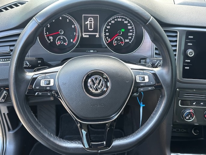 Met de achteruitrijcamera ziet u wat er achter de auto gebeurt. Zo rijdt u moeiteloos achteruit. Met adaptive cruise control houdt deze auto automatisch afstand tot uw voorligger. Dankzij Connected Services heeft u overal en altijd uw dashboard op zak. Alle belangrijke functies zijn te checken via de app. Beste route, verwachte aankomsttijd: uw eigen full map navigatiesysteem vertelt u alles! De achteropkomend verkeer waarschuwing bewaakt de afstand tot achterliggers en geeft een signaal als er te weinig ruimte is. De uitrusting van deze Volkswagen is met automatische airconditioning, regensensor, automatisch dimmende binnenspiegel, lederen stuur, centrale deurvergrendeling met afstandsbediening en boordcomputer behoorlijk compleet.