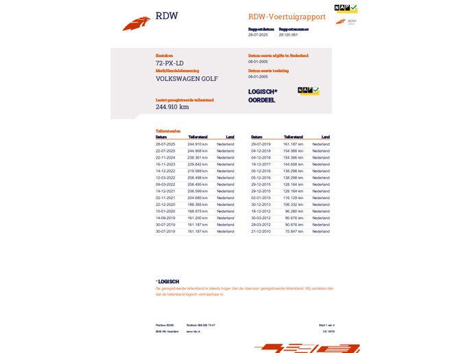 Kilometerstand gecontroleerd