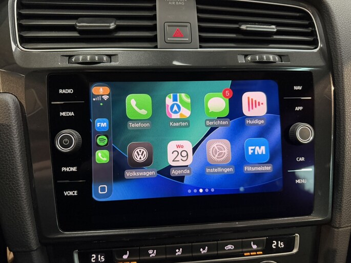 Omdat goed geïnformeerd rijden tegenwoordig om veel meer draait dan alleen snelheid en brandstofpeil, laat het digitale dashboard alle functies zien die u nodig heeft. Als u de adaptive cruise control inschakelt, regelt de auto zelf de snelheid en de afstand tot de auto voor u. Onderweg kunt u veilig genieten van het audio-installatiesysteem met DAB-radio en het full map navigatiesysteem. Want in deze Volkswagen bedient u ze vanaf het stuurwiel. Aan boord van deze Volkswagen Golf is een achteropkomend verkeer waarschuwing voor extra veiligheid. Automatische airconditioning regelt volautomatisch de temperatuur. U kiest de gewenste temperatuur en het systeem doet de rest. Ook parkeersensoren voor en achter, regensensor, automatisch dimmende binnenspiegel, lederen stuur, centrale deurvergrendeling met afstandsbediening en lederen versnellingspook horen tot de voorzieningen op deze auto.