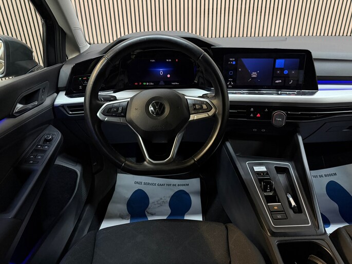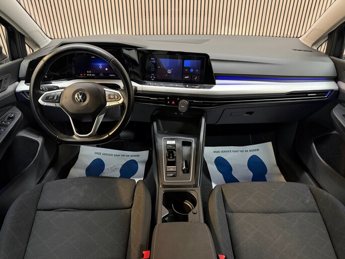 De stijl van een Volkswagen is onmiskenbaar. Het is een combinatie van degelijkheid, efficiënte motorenbouw en een strak design, zowel vanbuiten als vanbinnen. Dat ziet u ook terug in deze Golf Variant. De R-Line styling maakt deze Volkswagen Golf Variant echt áf. Een belangrijke eigenschap van iedere Volkswagen is zijn duurzaamheid. Dat ziet u ook aan deze Golf Variant. De aandrijving van deze Volkswagen wordt verzorgd door een viercilinder motor en een automatische transmissie. De verwarmbare voorstoelen zijn een weldaad voor rug en schouders. De sportstoelen geven het interieur een super strakke look. De achterklep opent automatisch met een druk op de knop. Handig als u met volle handen staat. Stramme vingers krijgen 's winters een VIP-behandeling van het verwarmd stuurwiel. De matrix LED-verlichting in de koplampen bestaat uit een raster van lichtpunten met maximale opbrengst. Bij tegenliggers past het systeem precies die punten aan die hinderlijk kunnen zijn. U behoudt maximaal zicht! Tot de uitrusting behoren ook 17 inch lichtmetalen velgen, sportonderstel, trailer assistent, extra getint glas, in delen neerklapbare achterbank en LED-achterlichten.