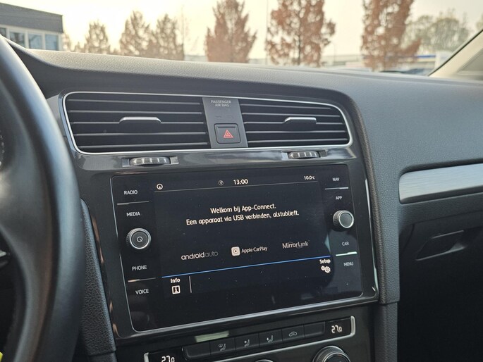 Als u de adaptive cruise control inschakelt, regelt de auto zelf de snelheid en de afstand tot de auto voor u. Waar u zelf ook bent, u staat altijd in contact met de auto via de app op uw smartphone. Zo controleert u uiteenlopende functies, ook op afstand. Het is veiliger om altijd uw ogen op de weg te houden en uw handen aan het stuur; daarom is dit voertuig uitgerust met een audio-installatiesysteem met DAB-ontvangst en een full map navigatiesysteem dat kan worden bediend via het stuurwiel of spraakbediening. De sensoren van de achteropkomend verkeer waarschuwing houden zicht op de dode hoeken achter u. Te weinig afstand tot de achterligger? Het systeem geeft direct een signaal. Met de automatische airconditioning selecteert u de gewenste temperatuur. Het systeem doet de rest. U bent in deze Volkswagen ook voorzien van parkeersensoren achter, lederen stuur, isofix-aansluiting, centrale deurvergrendeling met afstandsbediening, boordcomputer en lederen versnellingspook.