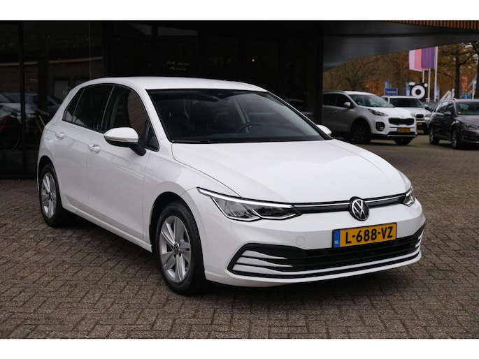 Nette, goed onderhouden en rijk uitgeruste Volkswagen Golf 1.0 TSI Life uit 2021. Deze praktische Golf is rijk uitgerust met o.a. Apple Carplay/Android Auto, cruise control adaptief, stuurwielverwarming, stoelverwarming, wisserbladen verwarmbaar, sfeerverlichting, PDC en lane assist. Uitgevoerd in PURE WHITE met zwart stoffen comfortinterieur.