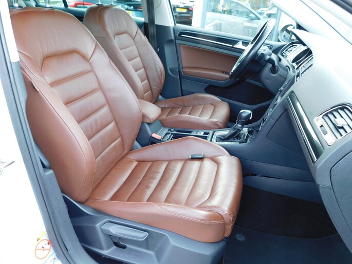 Van uw nieuwe auto verlangt u rijplezier, maar ook optimaal comfort en veiligheid. Daarom is de Volkswagen Golf de auto die u zoekt. Een belangrijke eigenschap van iedere Volkswagen is zijn duurzaamheid. Dat ziet u ook aan deze Golf. Het is een goed onderhouden auto, de onderhoudshistorie is bekend. Hij heeft een dieselmotor en een automatische transmissie. Houdt u van een luxe uitstraling? Dan is het lederen interieur een heel aantrekkelijke extra! De verwarmbare voorstoelen benadrukken nog maar eens dat we hier te maken hebben met een regelrechte verwenauto voor bestuurder en bijrijder. Pittig rijden wordt nog comfortabeler dankzij de fraaie sportstoelen. In het donker zorgt de xenonverlichting voor een goed zicht op de weg. Ook 18 inch lichtmetalen velgen, verstelbare lendensteunen en snelheidsafhankelijke stuurbekrachtiging horen tot de voorzieningen op deze auto.