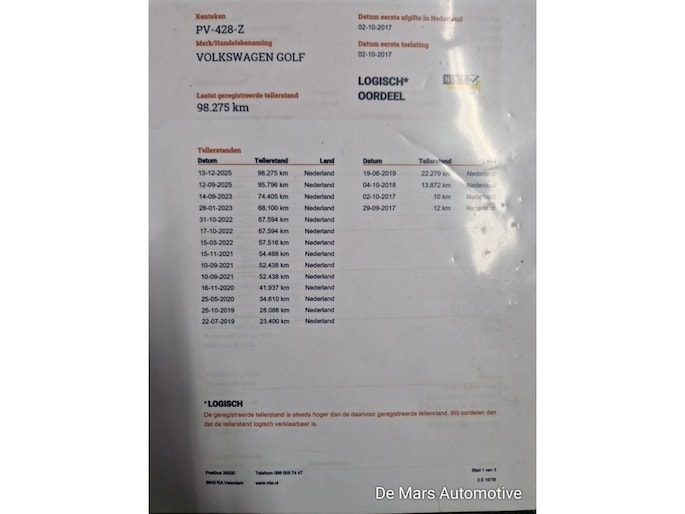 Kilometerstand gecontroleerd