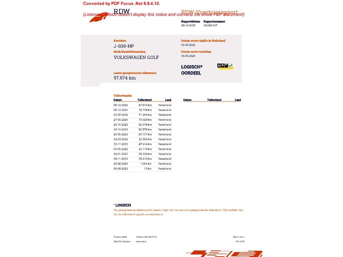 Kilometerstand gecontroleerd
