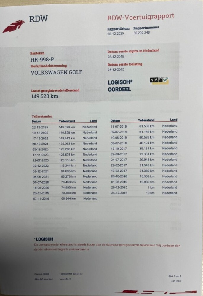 Kilometerstand gecontroleerd