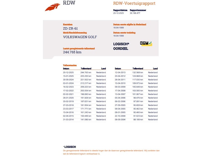 Kilometerstand gecontroleerd