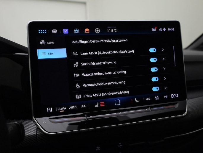 De Volkswagen Golf is ook voorzien van ADAS. Deze Advanced Driver Assistence Systems fungeren als extra ogen en oren: ze houden voor u de weg in de gaten en grijpen in wanneer dat nodig is. Uiteenlopende functies maakt de head-up display zichtbaar in de voorruit. De actuele snelheidslimiet, een inhaalverbod en andere verkeersborden; de verkeersborddetectie ondersteunt u tijdens elke rit. Het Lane-keeping systeem doet precies wat nodig is: waarschuwen en corrigeren bij onbedoelde overschrijding van de rijstrooklijnen. Dankzij veiligheidsvoorzieningen als dodehoekdetectie, front assist, hill hold functie, vermoeidheidsherkenning, frontale botsbescherming en bandenspanningcontrolesysteem, bent u steeds veilig onderweg.