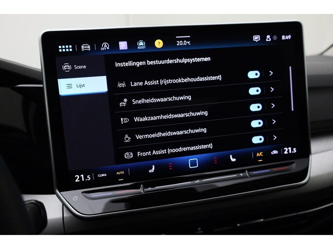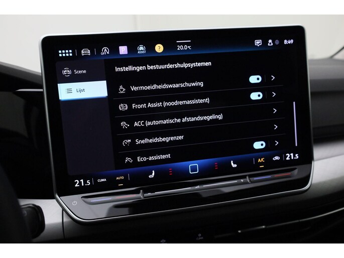 In deze auto zijn verschillende technologieën aanwezig die voor u het verkeer en de omgeving in de gaten houden en die desnoods ook kunnen remmen of bijsturen. Dat de auto steeds meer taken van de bestuurder overneemt, merkt u bijvoorbeeld aan het systeem voor verkeersbord-detectie in deze auto. Mooi binnen de lijnen van de rijstrook blijven? Het Lane-keeping systeem helpt altijd een handje. Om te voorkomen dat u tijdens lange ritten achter het stuur in slaap valt, is deze auto voorzien van vermoeidheidsherkenning. In deze Volkswagen vinden we verder een front assist, hill hold functie, autonoom remsysteem en bandenspanningcontrolesysteem.