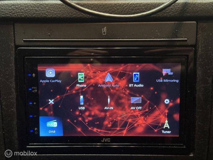 Multimedia scherm van JVC met CarPlay-Android auto.