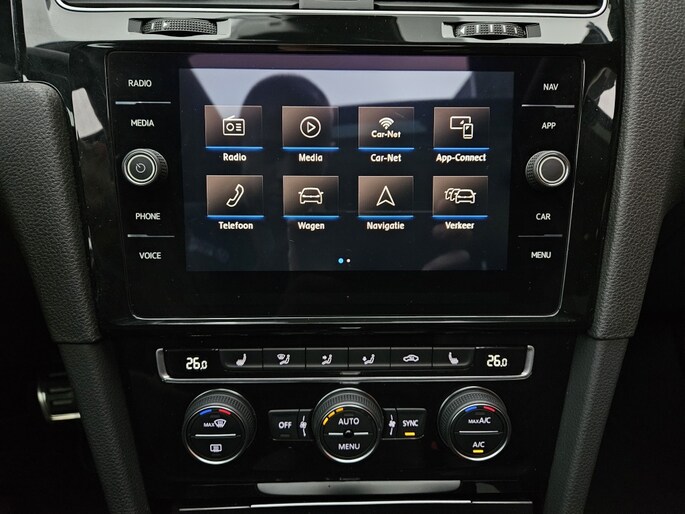 Wanneer je over de Autobahn zoeft in deze krachtige Volkswagen Golf, begrijp je waarom Duitse auto's wereldwijd zo hoog staan aangeschreven. De R-Line styling zorgt voor een kekke uitstraling van binnen en buiten. Een belangrijke eigenschap van iedere Volkswagen is zijn duurzaamheid. Dat zie je ook aan deze Golf. Doe maar luxe! Neem plaats in de verwarmbare voorstoelen en voel de weldaad in koude dagen. Opvallend zijn de stoere sportstoelen, die zorgen voor een onwrikbare zit in de scherpe bochten. Het glazen panoramadak laat jou genieten van een wijds uitzicht en meer lichtinval. Tot de uitrusting van deze Volkswagen behoren ook 17 inch lichtmetalen velgen, LED koplampen, sportonderstel, donker getint glas achter, in delen neerklapbare achterbank en LED-achterlichten.