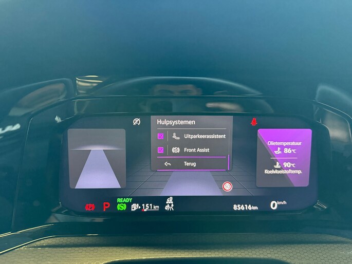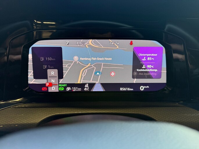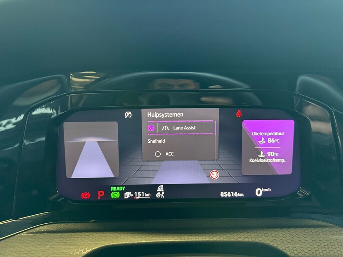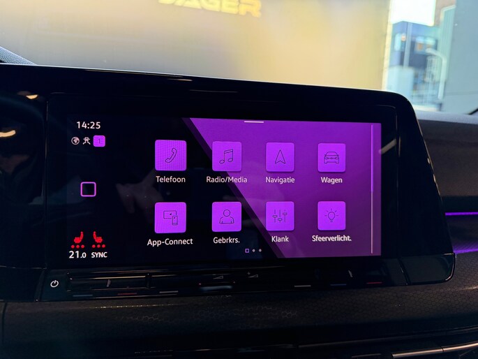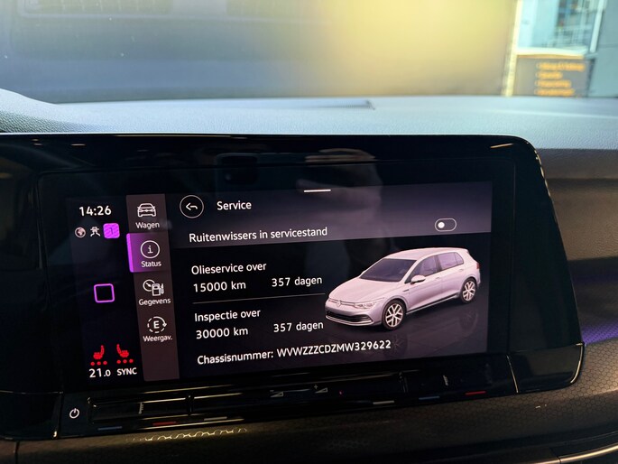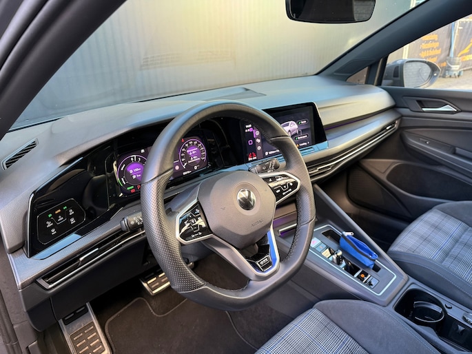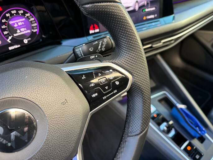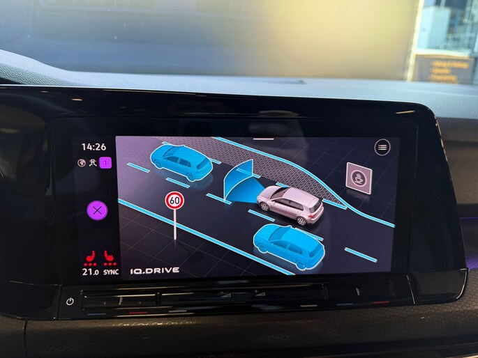Dankzij het digitale dashboard leest u alle benodigde info gemakkelijk en overzichtelijk af. Een vergeten muurtje, een verborgen paaltje? Dat gebeurt niet meer, dankzij de achteruitrijcamera. Adaptive cruise control houdt de ingestelde snelheid vast en houdt automatisch afstand tot uw voorligger. De speciale app verbindt met Connected Services, die de status van vitale functies bijhoudt en waarschuwt als u bijvoorbeeld moet tanken, de bandenspanning moet controleren of olie moet bijvullen. In deze Golf vindt u niet alleen schakelaars op het stuur om het navigatiesysteem te bedienen en het audiosysteem met DAB-ontvangst, maar er is ook spraakbediening. Deze auto is voorzien van achteropkomend verkeer waarschuwing, kruisend verkeer detectie, electronic climate control, draadloos opladen, regensensor en keyless entry.