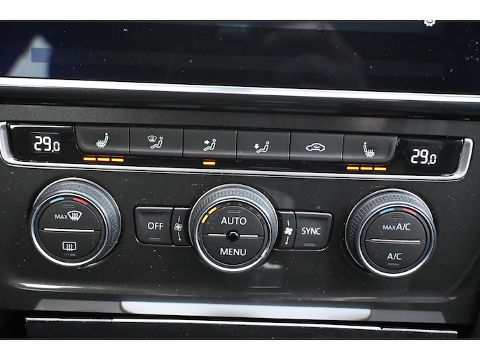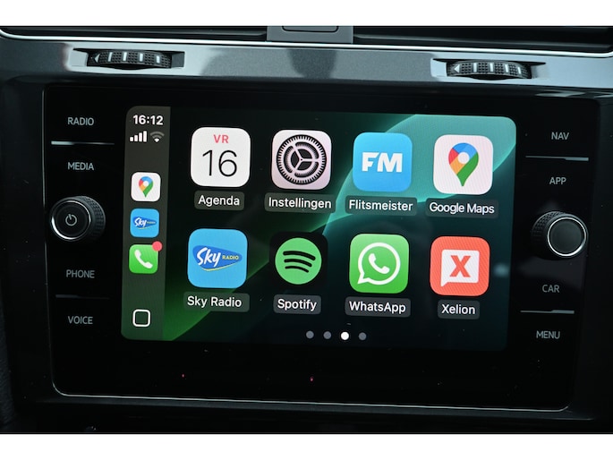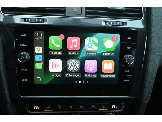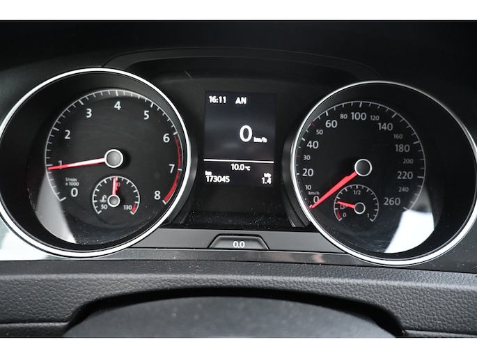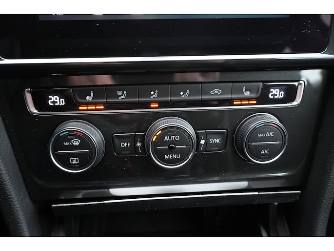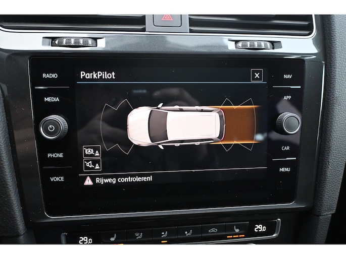 Adaptive cruise control houdt de ingestelde snelheid vast en houdt automatisch afstand tot uw voorligger. Had u de auto nou wel afgesloten? Met Connected Services checkt u het overal en altijd. Een optie die de veiligheid verhoogt, is de bediening vanaf het stuur van het audio-installatiesysteem (met DAB-radio!) en het full map navigatiesysteem. Als u wilt kunt u beiden zelfs met uw stem bedienen. Aan boord van deze Volkswagen Golf Variant is een achteropkomend verkeer waarschuwing voor extra veiligheid. De automatische airconditioning zorgt onder alle omstandigheden voor een prettige temperatuur. Extra opties op deze auto zijn: parkeersensoren achter, regensensor, lederen stuur, isofix-aansluiting, centrale deurvergrendeling met afstandsbediening en boordcomputer.