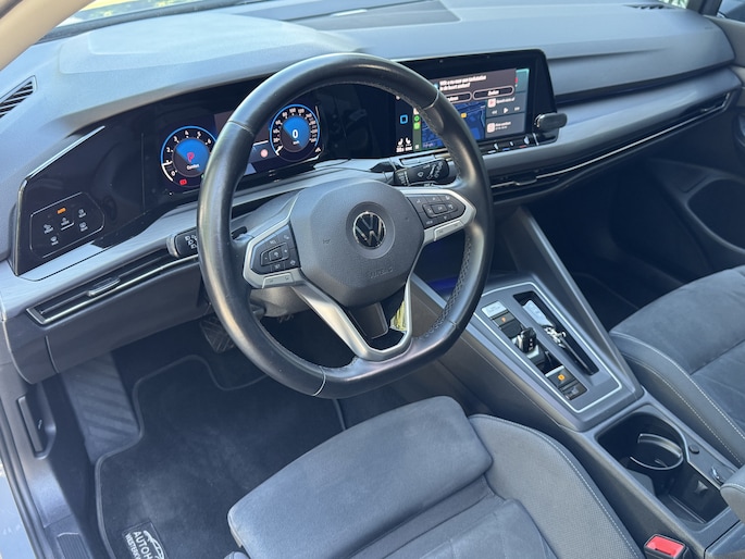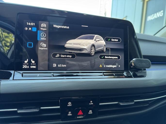 Alle functies die u onderweg nodig heeft, worden permanent geregistreerd en zijn afleesbaar op het digitale dashboard. Adaptive cruise control is veilig en comfortabel. De snelheidsregelaar houdt automatisch afstand tot het voertuig dat voor u rijdt. Rijden-stilstaan, rijden-stilstaan. Niks is irritanter en vermoeiender dan filerijden. Daar heeft deze Volkswagen Golf een oplossing voor: de file assistent, die met radarmeting permanent het tempo aanpast op de voorligger. Zelfs als die stopt. Dankzij Connected Services weet u precies waar uw auto geparkeerd staat. Ook andere functies, zoals bandenspanning en brandstofniveau, zijn via de app altijd onder handbereik. In deze auto beschikt u natuurlijk over een navigatiesysteem met harde schijf. Het audio-installatiesysteem met DAB-radio biedt glasheldere geluidskwaliteit. U bedient dit veilig, via het stuurwiel of met spraakbediening. Natuurlijk behoren achteropkomend verkeer waarschuwing, kruisend verkeer detectie, automatische airconditioning, draadloos opladen, parkeersensoren voor en achter en regensensor ook tot de uitrusting van deze complete auto.