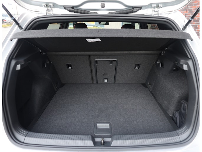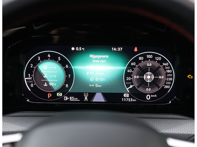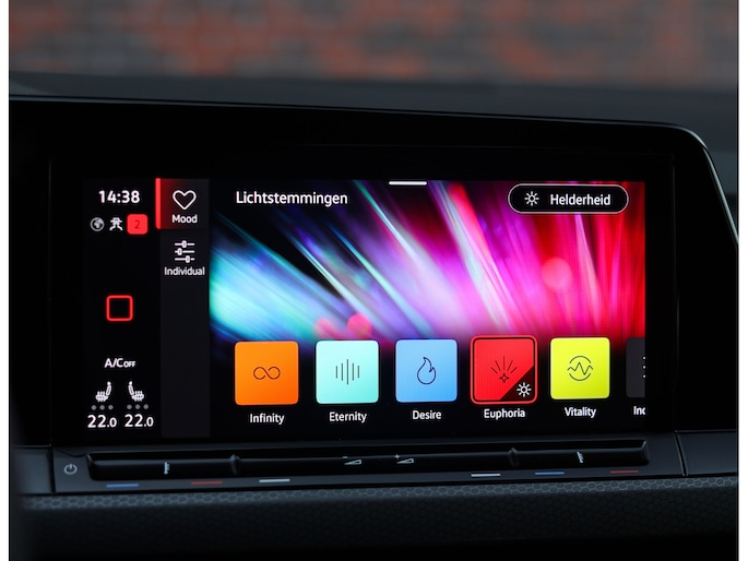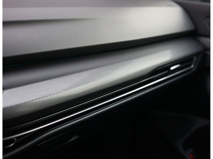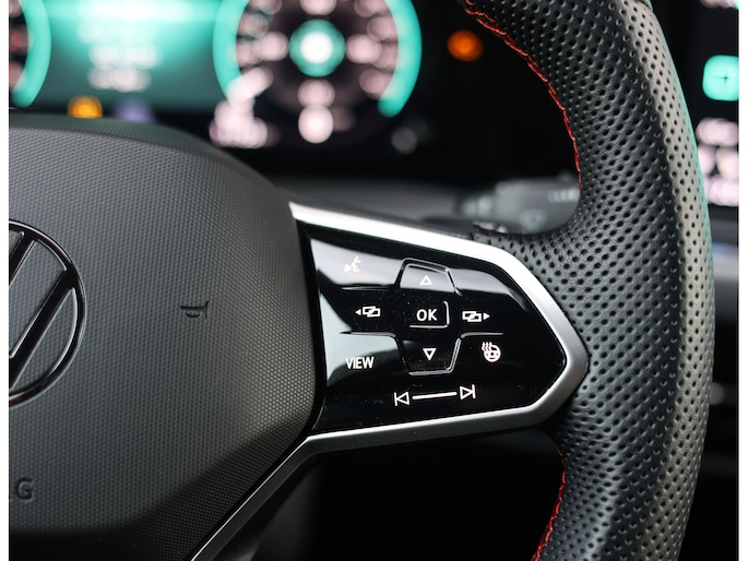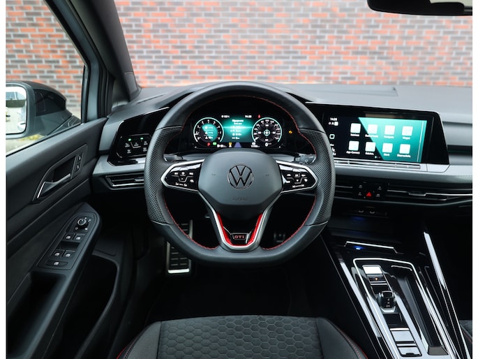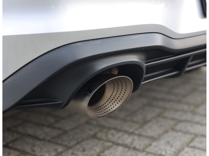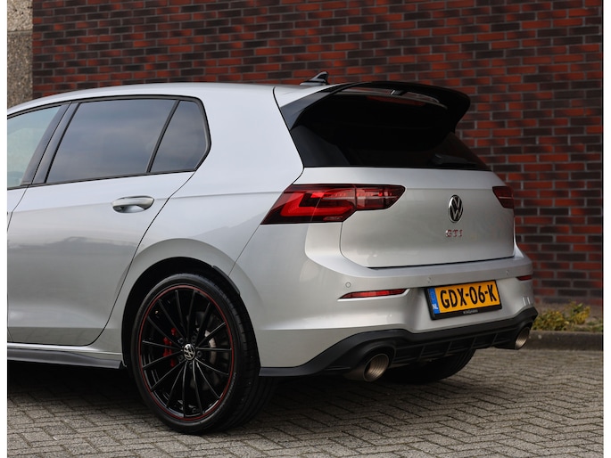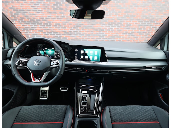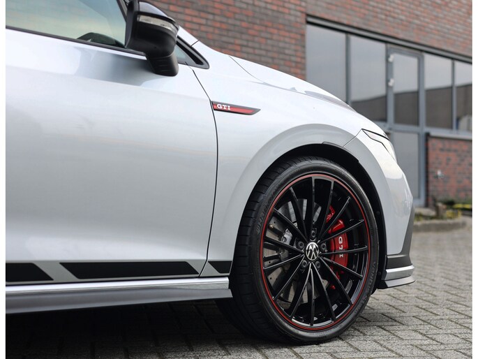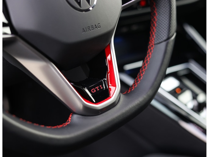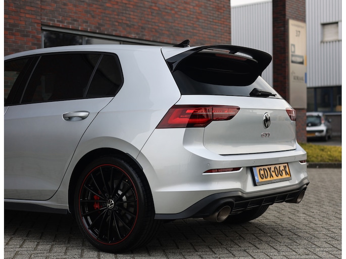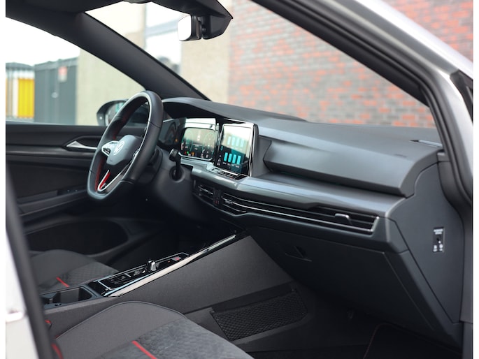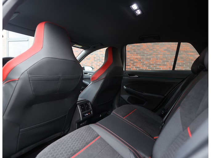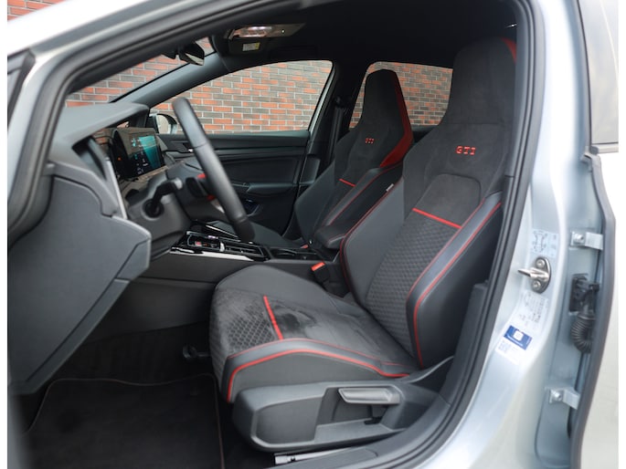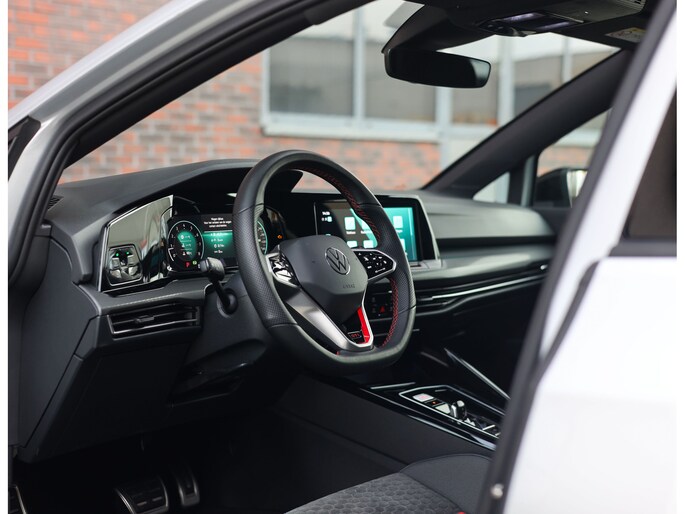 Het exterieur is uitgevoerd in Reflex Silver metallic, wat de auto prachtig staat in combinatie met het Black Style pakket en de 19” Scottsdale velgen in hoogglans zwart. Als GTI zijn de iconische rode accenten ook aanwezig, met een rood GTI-logo in de grille en zijschermen, rode remklauwen en een rode velgrand. Om het plaatje compleet te maken en de beleving nóg leuker te maken is deze GTI uitgerust met een Akrapovic-uitlaat.