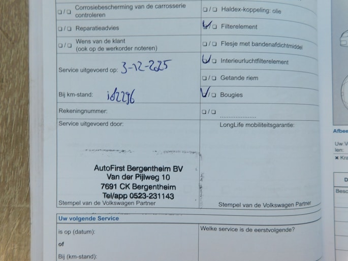 Onderhoudsboekjes: Aanwezig