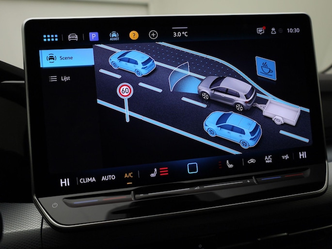 Het zal u verbazen hoe deze auto in staat is om voor u de omgeving en het verkeer om u heen in de gaten te houden. Verkeersbord-detectie herkent verkeersborden en toont deze op het instrumentarium van de auto. Het Lane-keeping systeem zorgt voor een automatisch constante positie binnen de rijstrook. Afdwalen is uitgesloten. Deze auto waarschuwt de bestuurder als die tekenen van vermoeidheid vertoont en kan zo ernstige ongelukken voorkomen. Met voorzieningen als dodehoekdetectie, front assist, hill hold functie, frontale botsbescherming en bandenspanningcontrolesysteem, bent u altijd veilig onderweg.