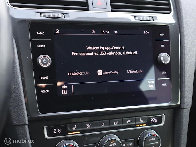 Adaptive cruise control houdt de ingestelde snelheid vast en houdt automatisch afstand tot uw voorligger. Zo'n lekkere jonge auto heeft natuurlijk leuke extra's, zoals remote services. Met een speciale app maakt u overal verbinding met de auto. Zo kunt u functies activeren en controleren. Selecteer uw reisbestemming en het full map navigatiesysteem brengt u snel waar u moet zijn. De sensoren van de achteropkomend verkeer waarschuwing registreren wat er gebeurt in de dode hoeken en achter u. U krijgt meteen een waarschuwing als u een achterligger over het hoofd ziet. Automatische airconditioning regelt volautomatisch de temperatuur. U kiest de gewenste temperatuur en het systeem doet de rest. Deze Volkswagen is voorzien van DAB ontvangst, parkeersensoren achter, regensensor, automatisch dimmende binnenspiegel, lederen stuur en isofix-aansluiting.