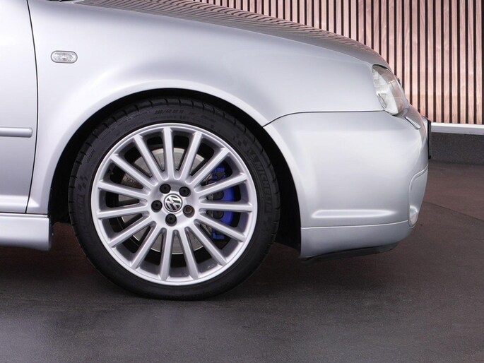 De R32 was standaard voorzien van 4Motion vierwielaandrijving. Dat betekent grip onder alle omstandigheden. Waar veel hot hatches uit die tijd vooral voorwielaangedreven waren, gaf de R32 je tractie en stabiliteit. Regen, koude ochtenden of stevig doortrekken op bochtige wegen, hij blijft solide en voorspelbaar.