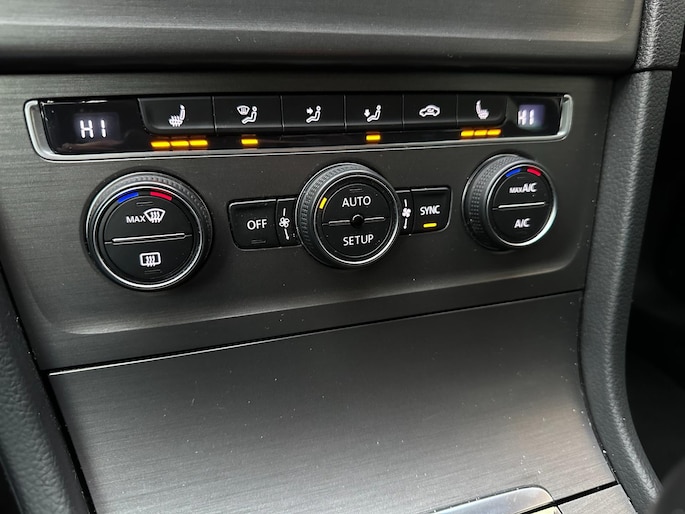 U kunt het audio-installatiesysteem en het navigatiesysteem met harde schijf bedienen met de knoppen op het stuur of zelfs met uw stem. De automatische airconditioning zorgt voor een prettige binnentemperatuur. Ervaar het comfort van inparkeren met parkeersensoren. Deze auto laat zich moeiteloos in elk parkeervak manoeuvreren. De elektronische systemen in deze Volkswagen helpen u actief om comfortabeler te rijden. Een automatisch inschakelbare verlichting en een regensensor houden de omstandigheden onderweg in de gaten. De voordelen van de aanwezige cruise control hoeven we niet uit te leggen. Een mooie, constante snelheid - niet te snel, niet te langzaam. Precies goed. Deze Volkswagen is voorzien van dvd-systeem, buitentemperatuurmeter, automatisch dimmende binnenspiegel, centrale deurvergrendeling met afstandsbediening, bagage afdekhoes en boordcomputer.