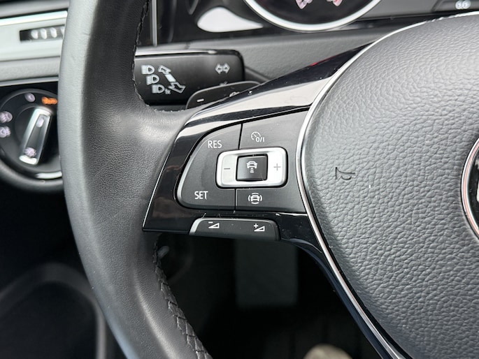 Nooit meer problemen bij achteruitrijden of inparkeren. De achteruitrijcamera houdt alles in de gaten! Adaptive cruise control is een comfortabele en veilige optie. Het systeem reguleert de snelheid en houdt automatisch afstand tot uw voorligger. De radio harder of zachter zetten of iemand uit uw contactenlijst bellen. Dankzij de spraakbediening doet u dit allemaal met uw stem. Connected Services zorgen ervoor dat de belangrijkste functies en data van de auto altijd en overal te checken zijn. Gewoon via de app op de smartphone. De snelste of zuinigste weg? Het navigatiesysteem aan boord wijst de juiste weg! Ook is de Volkswagen uitgerust met: achteropkomend verkeer waarschuwing, automatische airconditioning, schakelpaddles aan het stuur, regensensor, keyless entry en automatisch dimmende binnenspiegel.