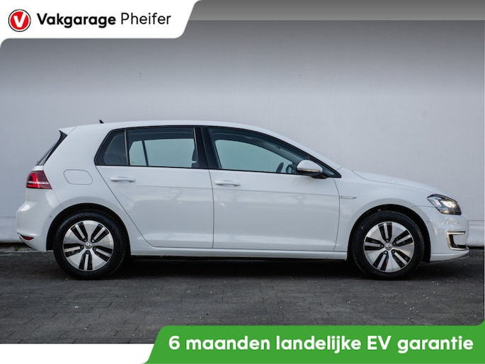 Volkswagen-rijders waarderen hun merk om de degelijkheid van de techniek en de uitmuntende rijkwaliteiten. Een Volkswagen is bovendien comfortabel en ruim, omdat hij altijd is ontworpen met de inzittenden als uitgangspunt. Een e-Golf zoals deze bijvoorbeeld, biedt ruim comfort voor vijf inzittenden. U zult verrast zijn door de power van de elektromotor. En stil! Volkswagen-rijders weten het: een VW is gebouwd voor duurzaamheid. Deze e-Golf is dan ook als nieuw, de onderhoudshistorie is bekend. De verwarmbare voorstoelen zijn een heerlijke extra optie, waarmee u uzelf en uw bijrijder een groot plezier doet. Een ommetje of een lange trip? De comfortstoelen zorgen elke keer voor een goede zithouding! Verder is de Volkswagen uitgerust met: 16 inch lichtmetalen velgen, LED koplampen, warmtewerend glas, dakspoiler, in delen neerklapbare achterbank en LED-achterlichten.