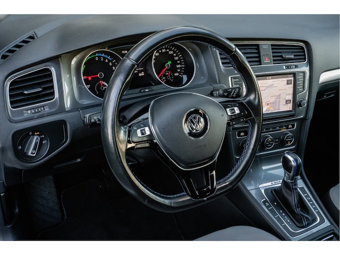 U kunt tijdens de rit uw ogen steeds op de weg houden, want het audio-installatiesysteem en het navigatiesysteem met harde schijf kunt u bedienen vanaf het stuur of met spraak. Deze Volkswagen e-Golf is voorzien van sensoren aan de achterzijde om een achteropkomend verkeer waarschuwing te geven als de afstand tussen u en een achterligger te klein is. Natuurlijk is er ook automatische airconditioning aanwezig. Soms heeft u meer parkeerruimte dan u denkt. Maar soms ook niet. De parkeersensoren vertellen precies hoeveel. In deze Volkswagen kunt u zich concentreren op het verkeer, terwijl de auto de omgeving voor u in de gaten houdt. Een automatisch inschakelbare verlichting zorgt dat de verlichting aangaat als het donkerder wordt - in tunnels bijvoorbeeld - en de regensensor schakelt de ruitenwissers in als het nodig is. U hoeft er niets aan te doen. Ook is de Volkswagen uitgerust met: cruise control, automatisch dimmende binnenspiegel, lederen stuur, centrale deurvergrendeling met afstandsbediening, boordcomputer en lederen versnellingspook.