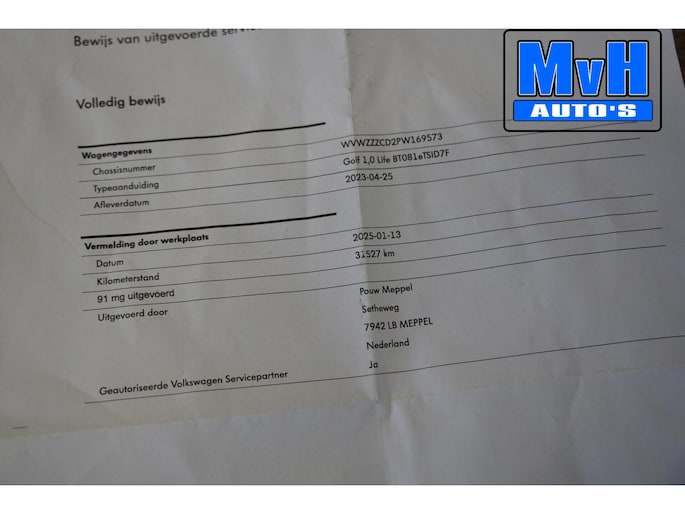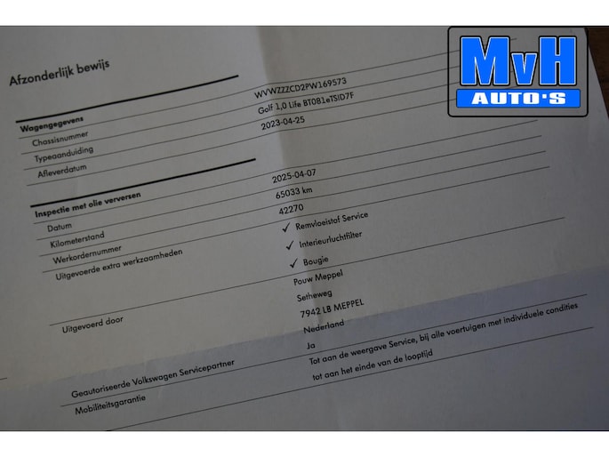 Te koop aangeboden: een Volkswagen Golf 1.0 eTSI Life uit april 2023, afkomstig van de eerste eigenaar en origineel Nederlands geleverd.