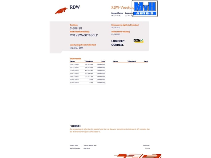 Kilometerstand gecontroleerd