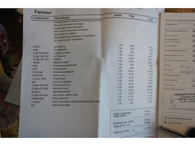 Kilometerstand gecontroleerd