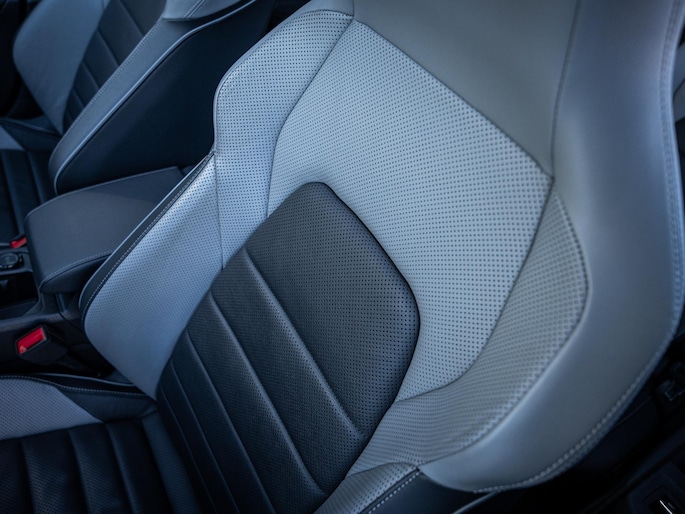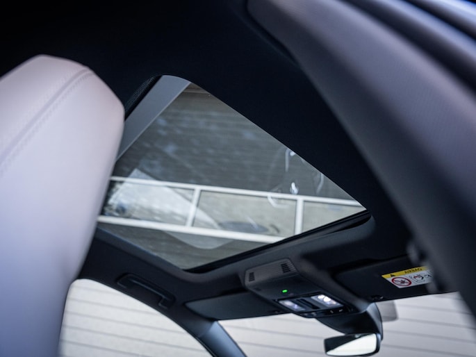 Het comfortniveau ligt hoog dankzij de elektrisch verstelbare lederen stoelen met geheugenfunctie. Deze bieden niet alleen een fijne zit tijdens lange ritten, maar geven het interieur ook een luxe uitstraling. Met extra’s zoals stoelkoeling, Apple CarPlay en Android Auto, sfeerverlichting, een panoramadak en een head-up display is het uitrustingsniveau werkelijk compleet.