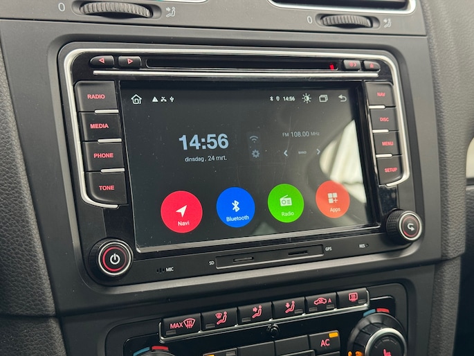De auto is zeer compleet uitgerust en biedt veel comfort en gebruiksgemak. Zo beschikt deze Golf over stoelverwarming, climate control, parkeersensoren voor en achter, koplampsproeiers en een radio met navigatiesysteem. Het navigatiesysteem betreft een aftermarket uitvoering, die moderne functionaliteit biedt.