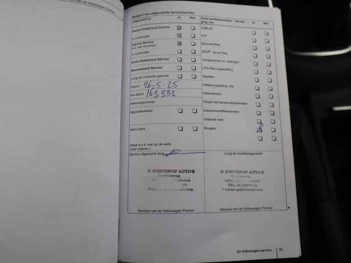 Onderhoudsboekjes: Aanwezig