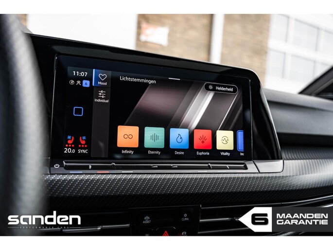 Ook op het gebied van comfort is deze Golf R zeer compleet. Het volledig lederen interieur met elektrisch verstelbare stoelen inclusief memory en ventilatie biedt hoogwaardig comfort. Het premium Harman/Kardon audiosysteem zorgt voor een uitstekende geluidskwaliteit, waardoor elke rit een beleving op zich wordt.