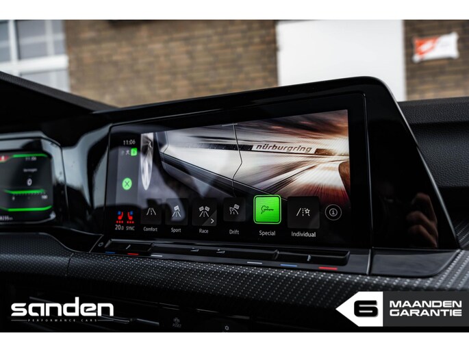 De sportieve beleving wordt verder versterkt door het Akrapovic uitlaatsysteem, dat zorgt voor een diepe en agressieve sound. Dankzij de aanwezigheid van Drift Mode biedt deze Golf R bovendien een extra speelse en dynamische rijervaring. Het panoramadak maakt het geheel af met een ruimtelijk gevoel.