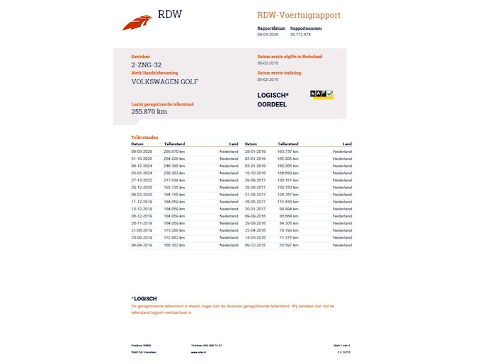 Kilometerstand gecontroleerd