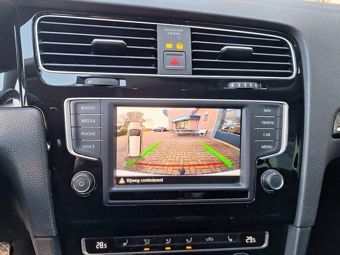 Zodra u naar de 'R' schakelt, gaat de achteruitrijcamera in werking en heeft u een perfect zicht op alles wat zich achter de auto afspeelt. Electronic climate control regelt volautomatisch de temperatuur. U kiest de gewenste temperatuur en het systeem doet de rest. In deze Volkswagen kunt u zich concentreren op het verkeer, terwijl de auto de omgeving voor u in de gaten houdt. Een automatisch inschakelbare verlichting zorgt dat de verlichting aangaat als het donkerder wordt - in tunnels bijvoorbeeld - en de regensensor schakelt de ruitenwissers in als het nodig is. U hoeft er niets aan te doen. De voordelen van de aanwezige cruise control hoeven we niet uit te leggen. Een mooie, constante snelheid - niet te snel, niet te langzaam. Precies goed. En deze auto heeft ook navigatiesysteem, multifunctioneel lederen stuur, DAB ontvangst, automatisch dimmende binnenspiegel, centrale deurvergrendeling met afstandsbediening en boordcomputer als standaard uitrusting.