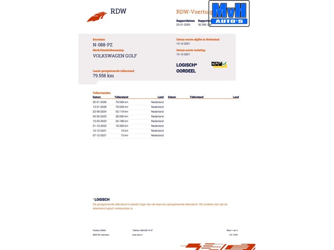 Kilometerstand gecontroleerd