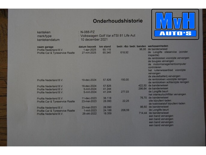 Laatste onderhoudsbeurt gehad in maart 2025 bij 65.340km. (LongLife onderhoud)
