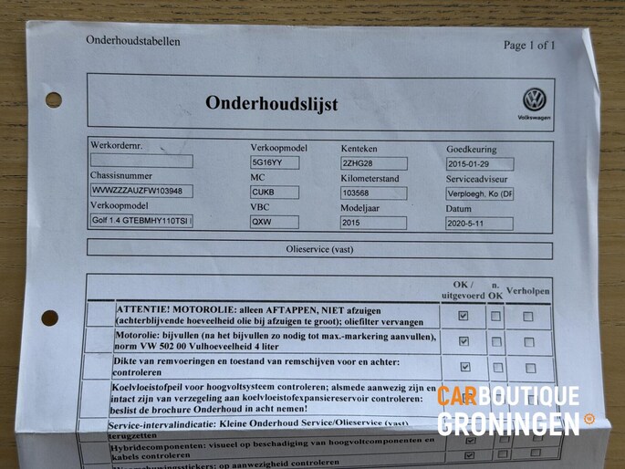 Deze origineel Nederlandse Volkswagen Golf GTE uit 2015 is een uitstekend onderhouden hybride die sportiviteit en zuinigheid feilloos combineert. Met een logische tellerstand van 242.055 km en een kersverse APK tot januari 2027 verkeert de auto in topconditie. Het onderhoud is zeer punctueel uitgevoerd; de laatste beurt vond plaats op 28 januari 2026 bij 237.934 km, waardoor de auto technisch helemaal up-to-date is en de volledige historie uiteraard aanwezig is.