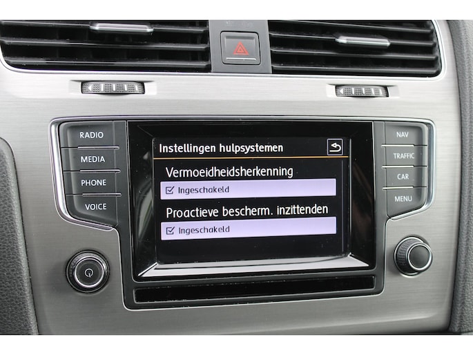 Zoals u mag verwachten van deze Volkswagen Golf is hij uitgerust met een reeks aan actieve veiligheidssystemen. Vermoeidsheidsherkenning herkent tekenen van vermoeidheid bij de bestuurder. Het systeem voorkomt dat er ongelukken gebeuren doordat de bestuurder in slaap valt. Stilstaan op een aflopend of schuin stuk weg? De hill hold control zorgt dat u probleemloos op uw plek blijft. En zodra u het gaspedaal activeert, rijdt u zo weg. Een noodsituatie? Dan is remmen cruciaal. Daarom heeft deze Volkswagen Golf Brake Assist als remondersteuning.