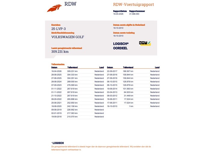Kilometerstand gecontroleerd