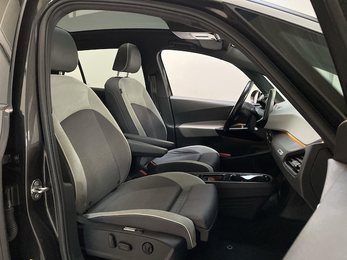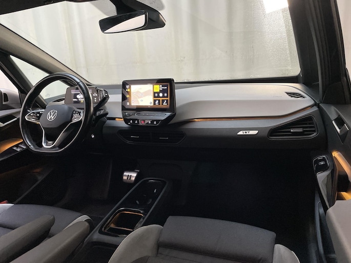 Natuurlijk, een Volkswagen herken je altijd. Want een Volkswagen onderscheidt zich met zijn kwaliteit, zijn doordachte techniek en zijn geweldige rijeigenschappen. En dat geldt ook voor deze ID.3. Het zijn de degelijkheid van de constructie en de doordachtheid van het ontwerp die ervoor zorgen dat een Volkswagen jarenlang begeerlijk blijft. Zoals deze ID.3, bijvoorbeeld. 's Winters komen de verwarmbare voorstoelen heerlijk van pas. En ze zijn ook nog eens voorzien van massagefunctie. Licht en luchtpartijen: je krijgt ze bijgeleverd dankzij het glazen panoramadak. Als je de stuurverwarming inschakelt, geniet jij van weldadige warmte voor jouw handen en vingers. De kwaliteit van de matrix LED-verlichting geeft het gevoel dat je bij daglicht rijdt. Ook 20 inch lichtmetalen velgen, extra getint glas, in delen neerklapbare achterbank, LED-achterlichten, verstelbare lendensteunen en snelheidsafhankelijke stuurbekrachtiging horen tot de voorzieningen op deze auto.
