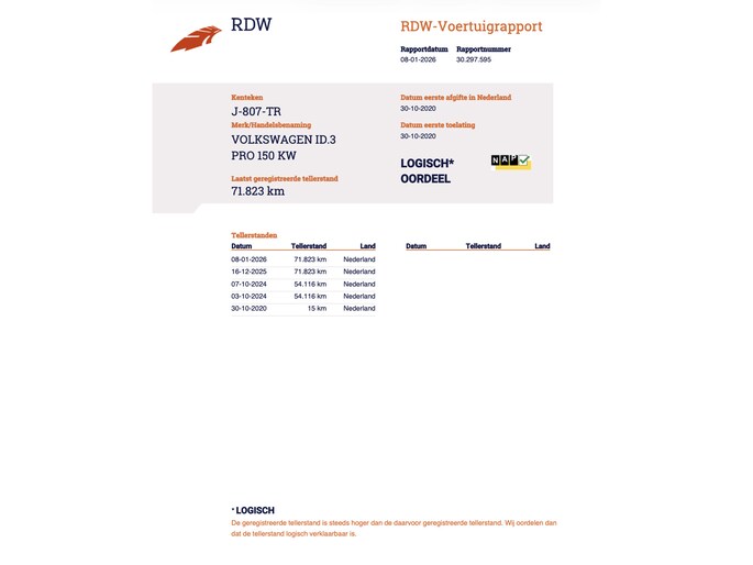 Kilometerstand gecontroleerd