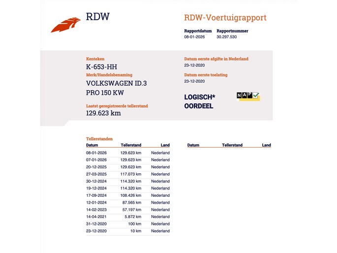 Kilometerstand gecontroleerd