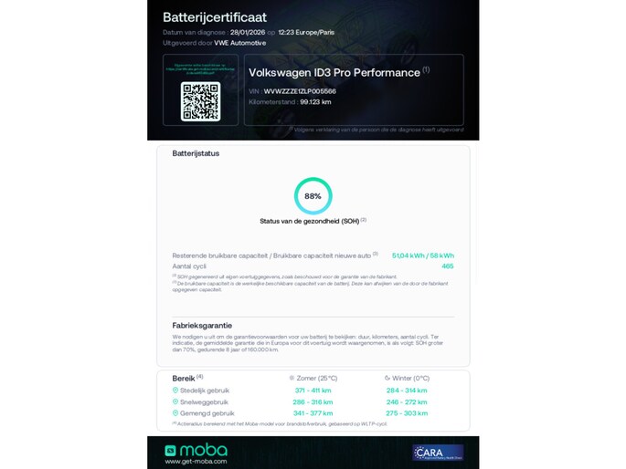 First Plus 58 kWh Met SOH Camera met SOH rapport