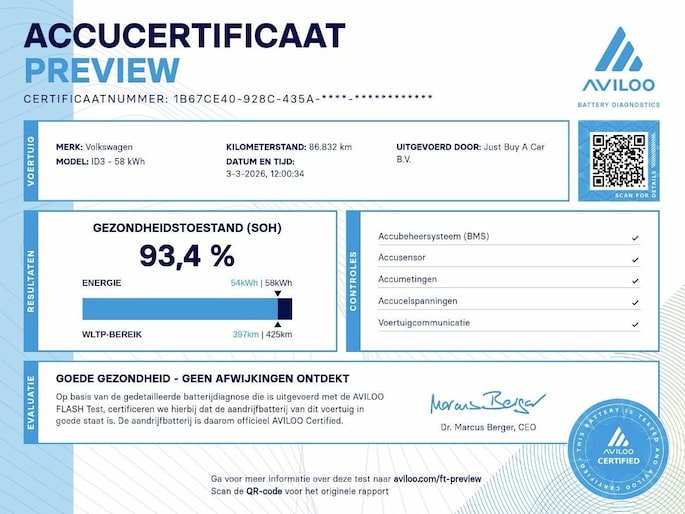 Life 58 kWh Black Edition SoH 93,4% / Trekhaak / Stoelverwarming / Adaptive cruise / Carplay / Navigatie / Full LED / Dealeronderhouden / Fabrieksgarantie / 1e Eigenaar /