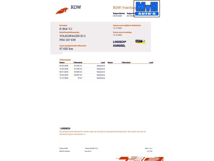 Kilometerstand gecontroleerd